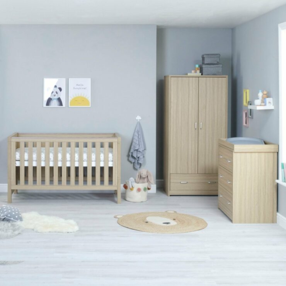 The Babymore Luno range offers a modern, warm, and clean design, with its neat lines and a beautifully textured Warm Oak wood effect finish. It will sit stylishly in your baby’s nursery.