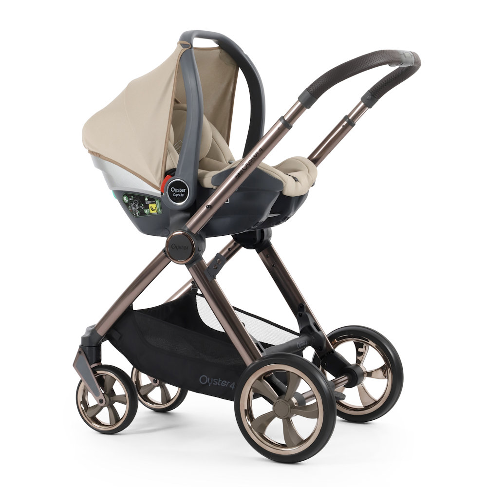 With 19 configurations, the Oyster4 evolves to suit your needs. Compatible with the Oyster Carrycot, Capsule Infant Car Seat, and Oyster Basket (up to 9kg). You can also pair the Oyster4 Stroller with the Ride-on Board for older children up to 20kg.