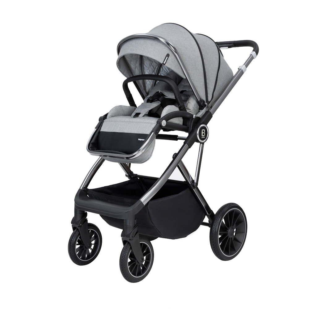 - Includes chassis frame, carrycot, seat unit, car seat adaptors, footmuff, changing bag and raincover.