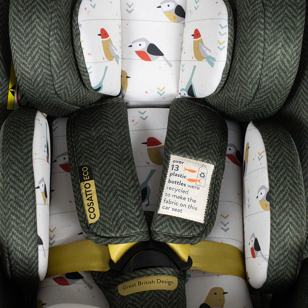 All in All Rotate i-Size is the first Cosatto Car Seat to use fabric made from recycled bottles with over 12 plastic bottles in every Car Seat. Creating this comfy fabric is part of Cosatto’s commitment to being as eco-conscious as possible. From solar panels at head office, to a business-wide drive for carbon neutrality – Cosatto are now addressing product processes to make the biggest impact of all. Bottles in our fabric means less bottles in landfill and less bottles making their way to the ocean.