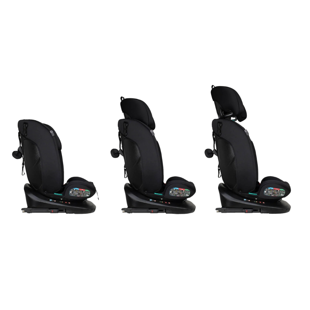 - Rotate Smoothly for Longer – Get Set Grow i-Size 360 car seat offers you the smoothest rotation and for longer. It can be rotated to side-facing for easy access from the car door until the child is 150cm (approx. 12 years old). The simple one-handed mechanism allows you to rotate the car seat 360 degrees. No more stretching when lifting your child out or securing the harness. Get Set Grow i-Size 360 locks easily into position for the direction of travel required and transitions smoothly from rearward to forward-facing.