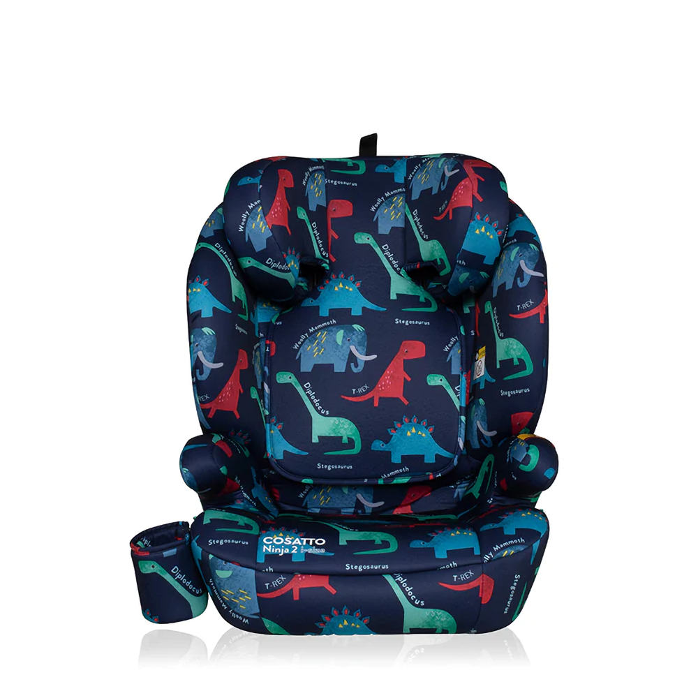 Ninja 2 i-Size in Cosatto D Is For Dino. The ISOFIT car seat suitable from 100cm up to 150cm (approx. 4 years to 12 years).