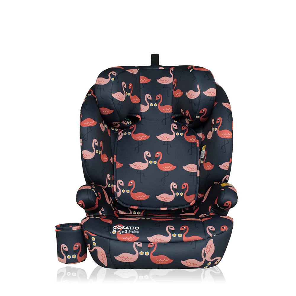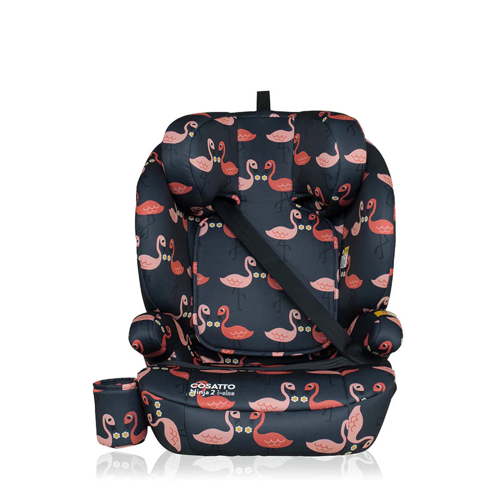 Ninja 2 i-Size in Cosatto Pretty Flamingo. The ISOFIT car seat suitable from 100cm up to 150cm (approx. 4 years to 12 years).