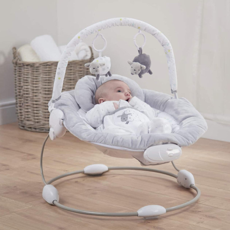 The Silvercloud Counting Sheep Bouncer provides a supportive, cosy place for baby to relax.