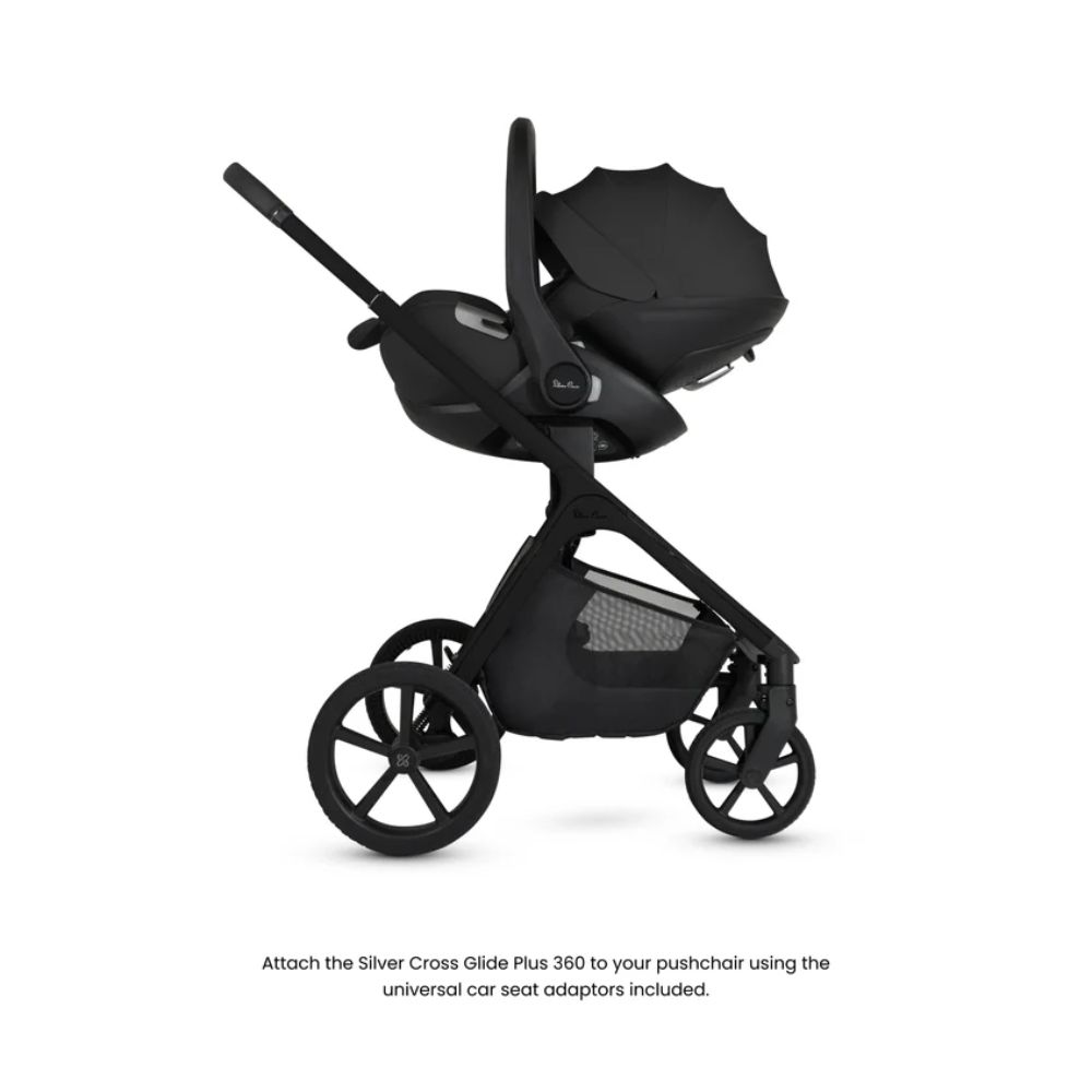 - Two from-birth car seats included: Glide Plus 360 baby car seat, Approach Plus 360 multi-stage car seat