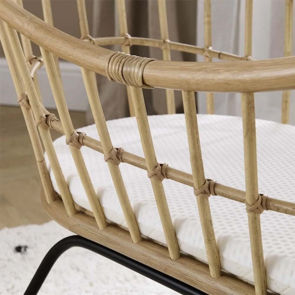 The CuddleCo Aria Wave Crib offers exquisite, detailed craftsmanship with a delicately woven pattern and gentle, flowing curves. Featuring gorgeous natural rattan and slick and stylish black legs for support, this crib is the essential sleeping environment for your child.