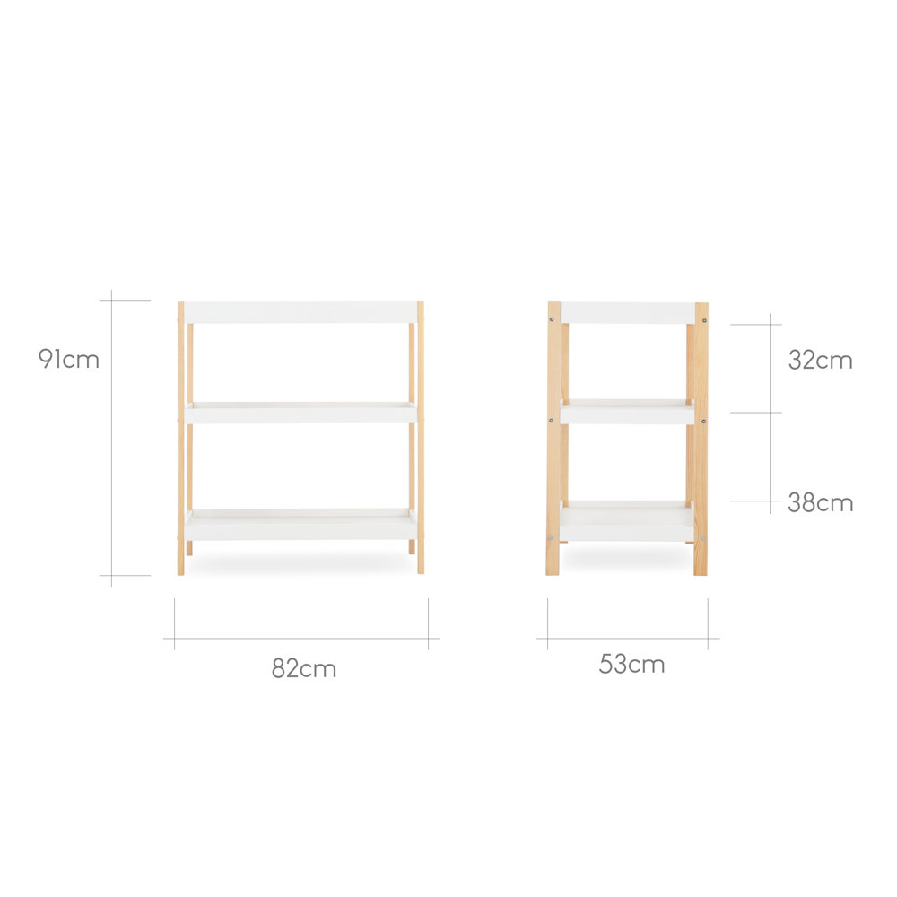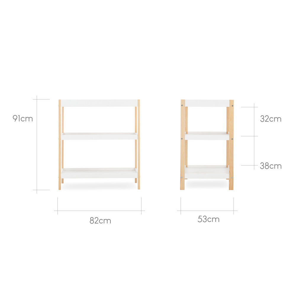 The Nola changing unit has a changing top with raised sides for you to place your baby’s changing mat. Below the changing area, you’ll discover 2 spacious shelves perfect for keeping day-to-day changing essentials nearby. Nola’s open design means you can easily access your baby’s nappies, wipes and creams. The shelves also can be used for storing towels and clean sleepsuits.