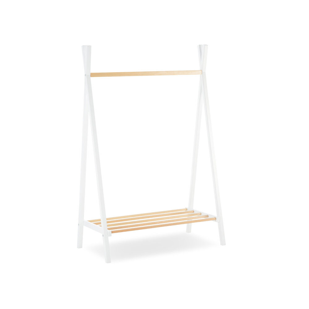 The Nola nursery clothing rail is the perfect solution if you’re looking for an alternative to a wardrobe. Nola’s open design is a popular option for smaller nurseries that want to avoid creating a crowded space. The design also means your baby’s clothes will be easy to grab, whether you’re getting them ready for the day ahead or after an accidental spill. The dress-up rail also has a spacious shelf for your little one’s shoes.