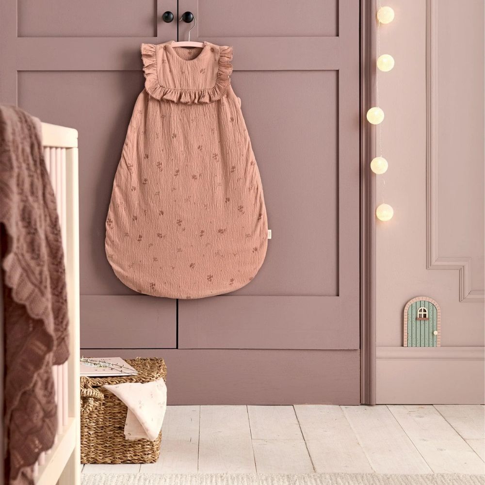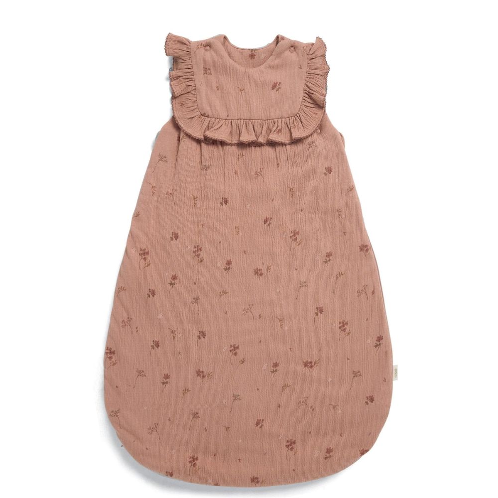 Dusty pink dreampod, for ages 0-6 months. Featuring lovely ‘meadow spring’ floral print throughout in a deluxe soft crinkle jersey fabric. In 2.5 Tog, for cooler nights.