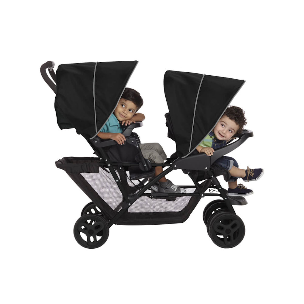 The versatile Stadium Duo tandem pushchair gets its name thanks to the raised stadium-style seating that makes sure views of the world ahead aren’t just limited to the child in the front seat.
