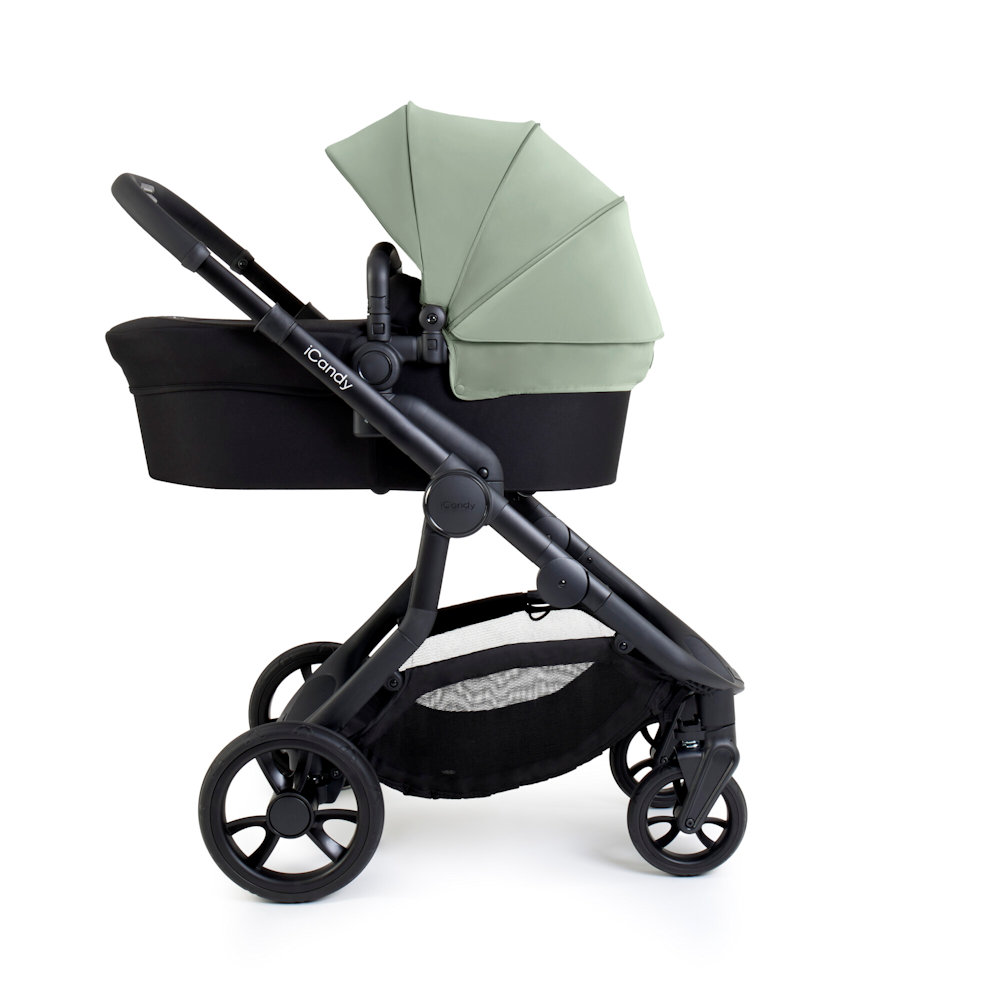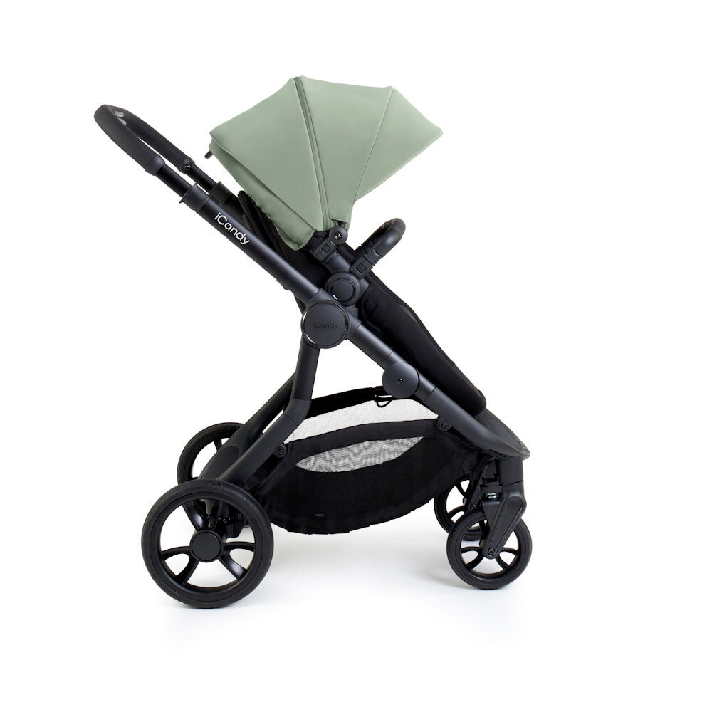 The iCandy Orange 4 showcases a refined and enhanced aesthetic, with a luxurious interchangeable canopy that is water repellent and breathable. The mesh ventilation adds to the comfort factor, and you can choose from six trend-led colours – Pistachio, Fossil, Latte, Rose, Glacier and Black Edition, all complemented by a sleek Jet Black chassis. The pushchair also features an integrated Ride-on Board, a lightweight and streamlined chassis, and a generously spacious basket, making it the ideal choice for both first-time parents and growing families right from the start.