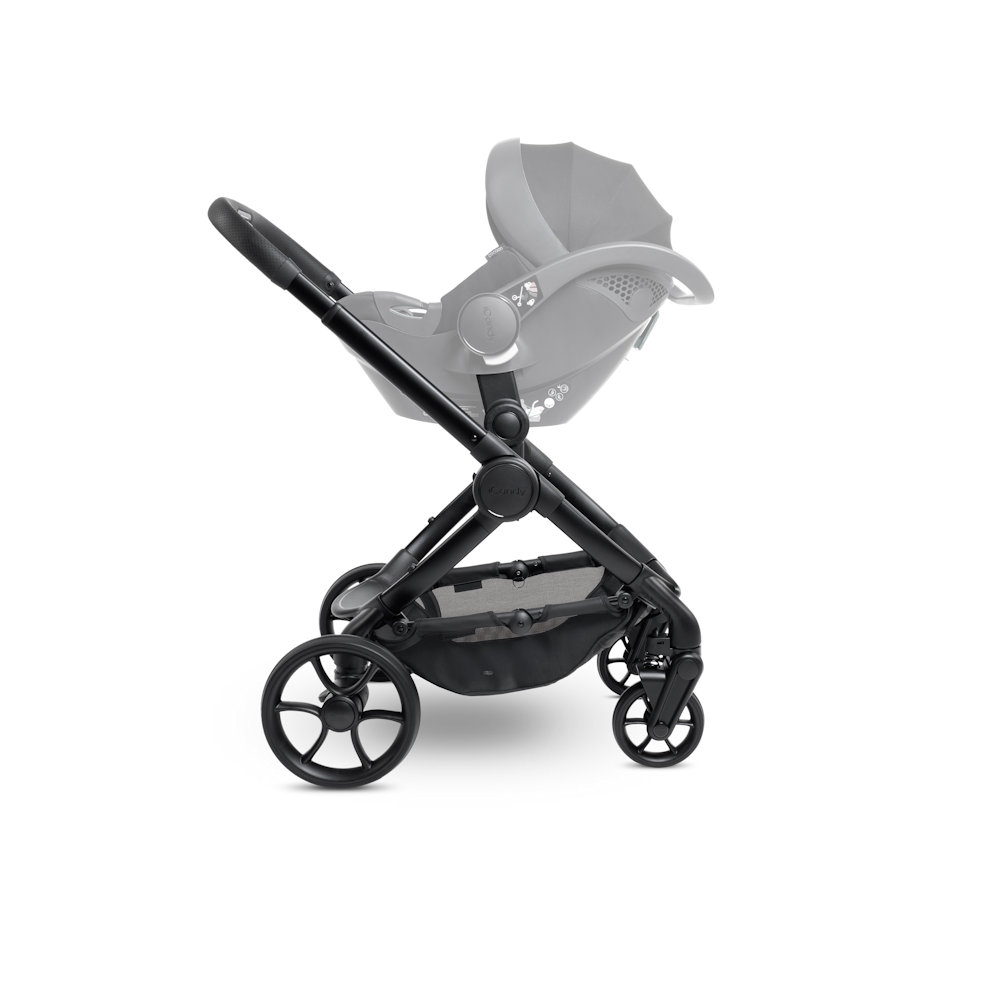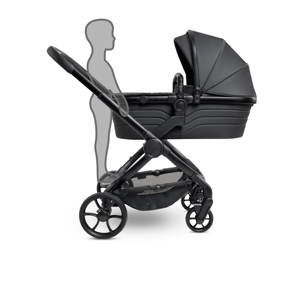 Its ultra matt black chassis, exclusive textured leatherette fabrics and fashion-inspired details create a sophisticated aesthetic. The spacious, Lullaby Trust-approved carrycot ensures comfort from birth, while features like the integrated Ride-on Board, lightweight puncture-proof PU tyres and effortless one-handed fold simplify parenting.