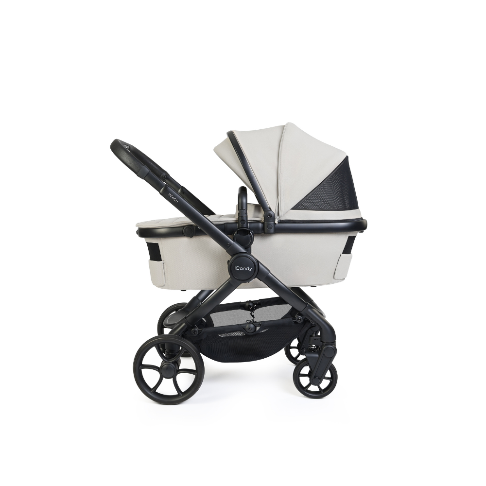 The spacious, collapsible Peach 8 carrycot has been redesigned to provide increased airflow and is approved by The Lullaby Trust for permanent overnight sleeping, whether at home or away, including when used with the compatible iCandy MiStand. Advanced suspension and puncture-proof tyres ensure an ultra-smooth ride across all terrains, while thoughtful features such as the extendable canopy with UPF protection, ergonomic one-hand release system, flip-flop friendly brake and integrated Ride-on Board make everyday travel easier.