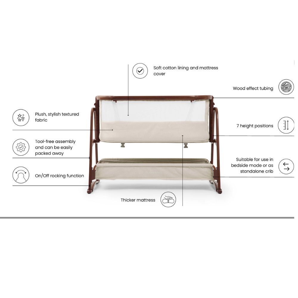 New arrivals bring plenty of check-ins – and you’ll want to keep a watchful eye on your little one at every moment. So keep baby close, comfortable and gently soothed to sleep with the Bubba&Me Luxe by Ickle Bubba. Designed to help your child snooze soundly by your side, gently push to sway them to sleep or lock in place for moments of calm stillness.