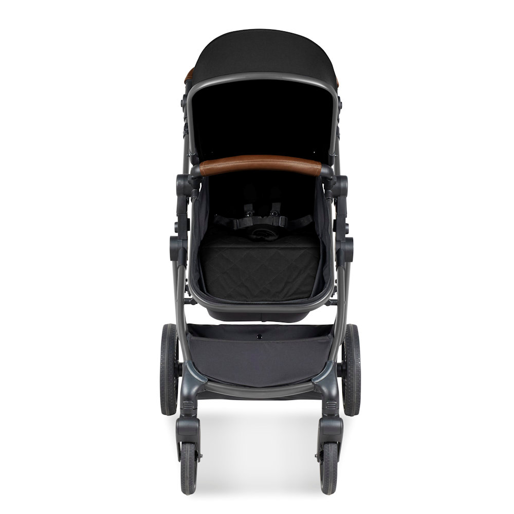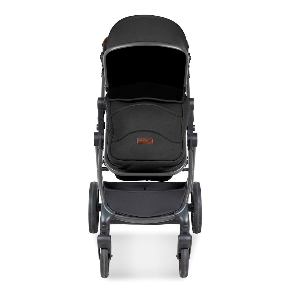 The Cosmo pram unit creates a lie flat space for newborns and can be converted into the pushchair seat unit as they get older. This will take baby from birth to 22kg (approx. 4 years). You and baby can enjoy luxury fabrics, a fleece-lined footmuff and a protective apron with privacy panel. Plus, you can choose between a modern matte black finish or gunmetal chassis colour to offset the leatherette handlebar and create an affordable pram of distinction.