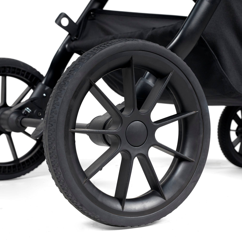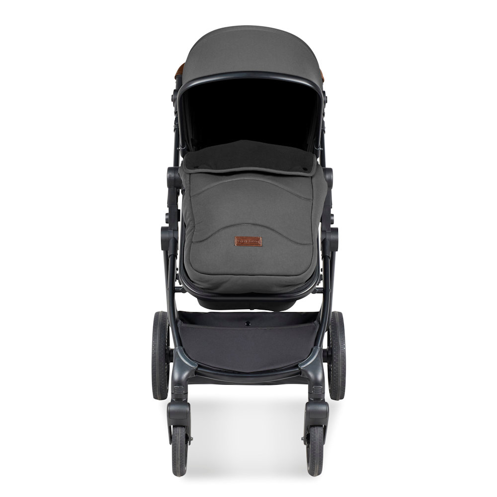 The Cosmo pram unit creates a lie flat space for newborns and can be converted into the pushchair seat unit as they get older. This will take baby from birth to 22kg (approx. 4 years). You and baby can enjoy luxury fabrics, a fleece-lined footmuff and a protective apron with privacy panel. Plus, you can choose between a modern matte black finish or gunmetal chassis colour to offset the leatherette handlebar and create an affordable pram of distinction.