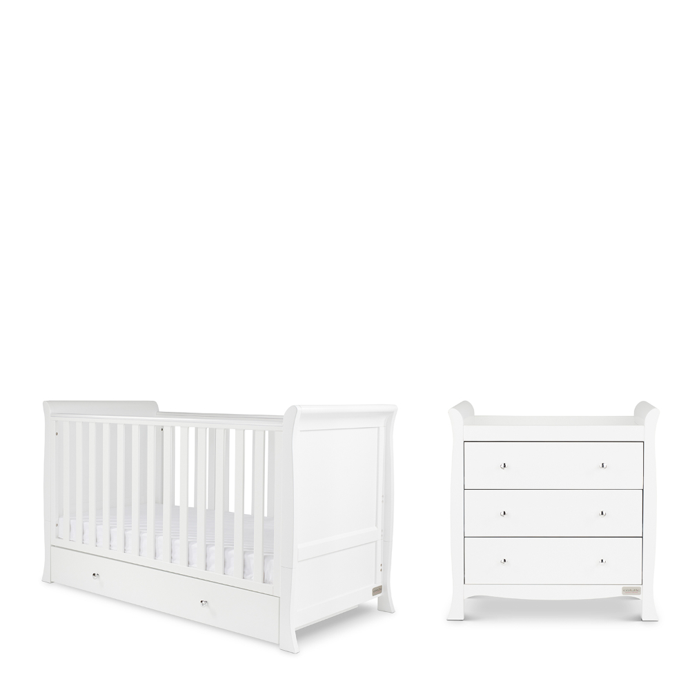 The Snowdon Classic 2 Piece with Cot Bed and Changing Unit has a distinctive and traditional sleigh design and is ideal for those parents who want a heritage look, suited to a modern lifestyle.