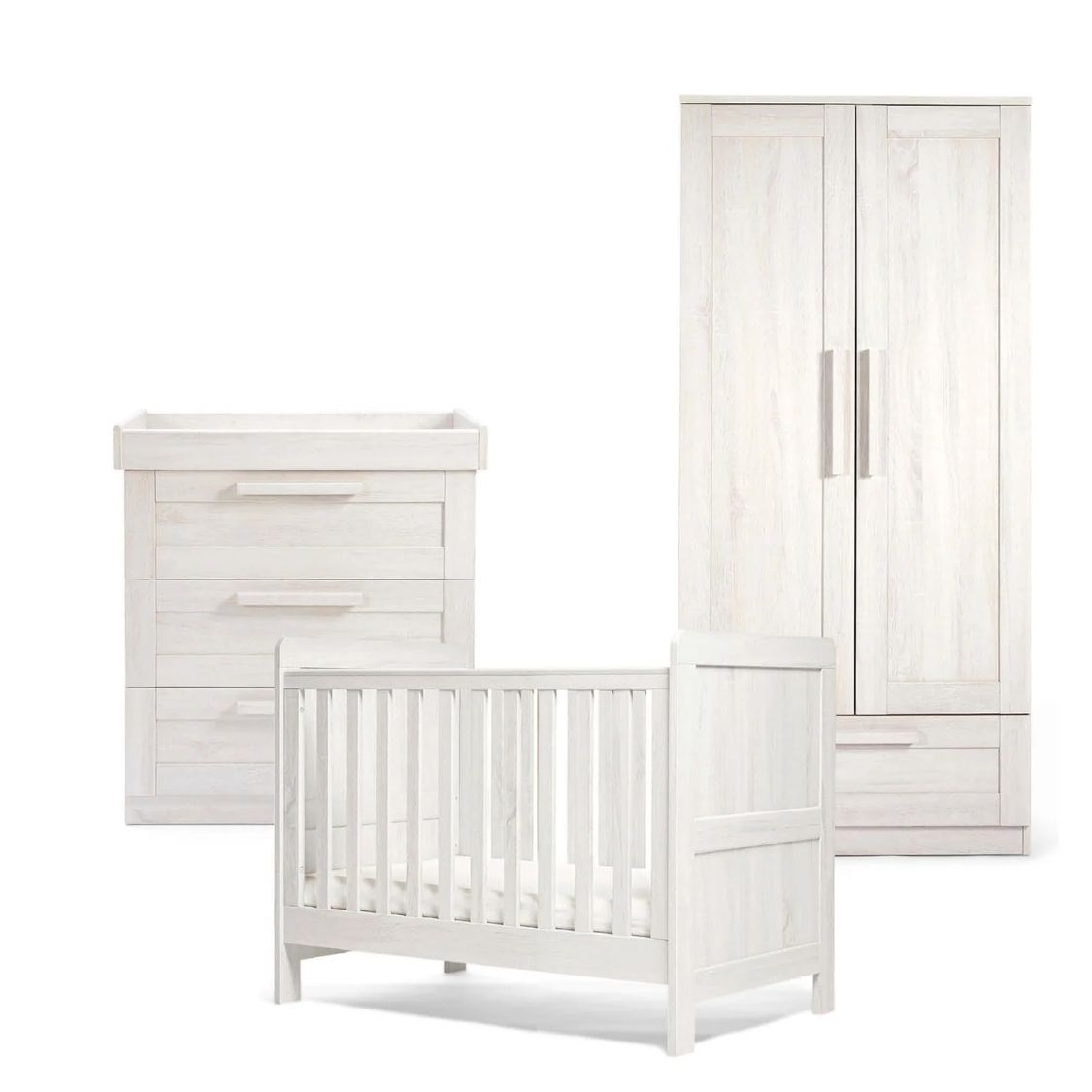 This set include the Atlas Small Cotbed, Dresser Changer and Wardrobe – White