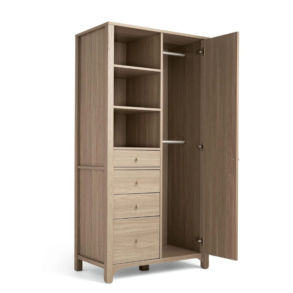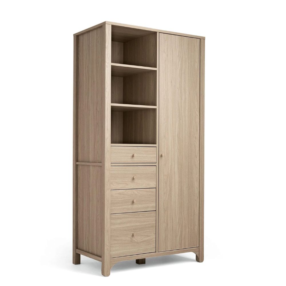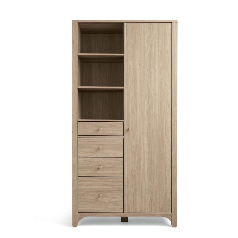 Barton is a wardrobe that can be used from baby to toddlerhood—and well beyond! Its full-size design features two adjustable hanging rails and a convenient shelf, providing flexible storage that adapts as their wardrobe evolves. With a variety of thoughtfully designed, different-sized drawers and open shelving, there’s space to store everything from tiny accessories and everyday essentials to growing collections of clothes. Soft-close doors and drawers help maintain a peaceful nursery, while its beautifully subtle design in a warm, natural oak finish ensures that Barton blends seamlessly into any space.