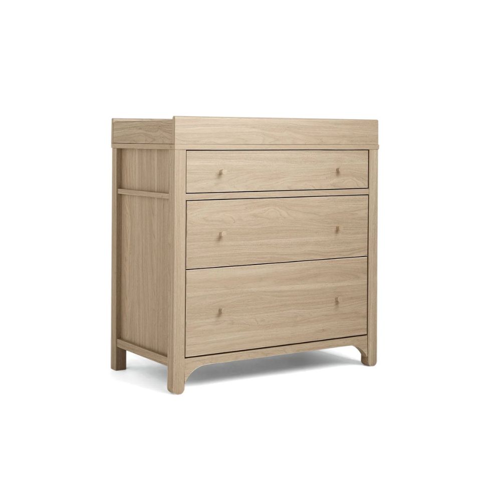 Designed to adapt as your little one grows, our Barton dresser changer is a clever combination of style and practicality. Featuring a removable changing top, it seamlessly transforms from a baby-changing station into a stylish dresser, lasting for years to come. With soft-close drawers in varying sizes, it’s perfect for organising everything from newborn essentials to growing wardrobes. Finished in warm natural oak with a subtle design and gently curved feet, it effortlessly complements any nursery, no matter your style.