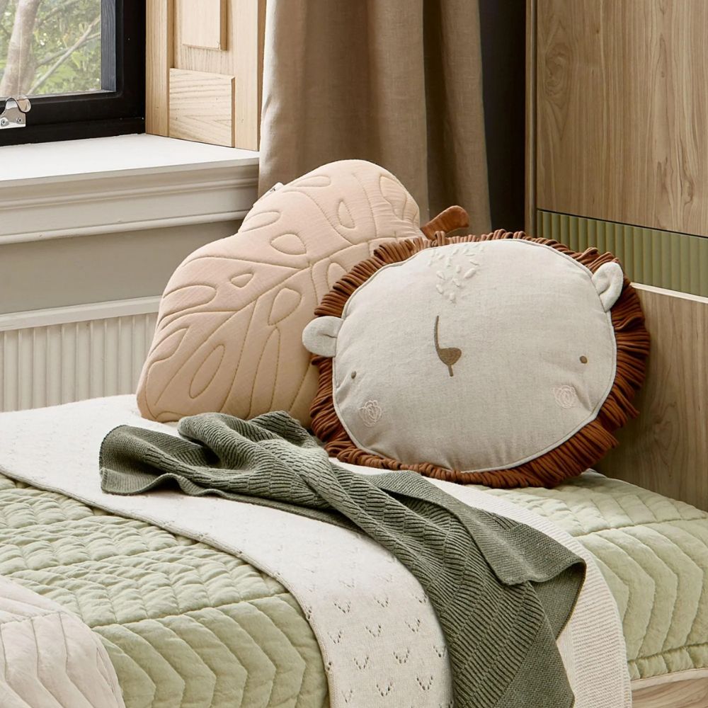 Combining a hint of safari print, wilderness-inspired shades of sage green, sand and dark pink, and the natural charm of wild animals, this playful nursery range is full of character, warmth and imagination. Contrasting textures – super soft jersey, washed cotton in herringbone quilting, lightweight ribbed knit – lend the range a tactile and sophisticated feel, while the colour-palette is muted subtle and earthy, neutral enough to sit in any nursery. Finishing touches are designed to fit in any nursery too – fun and eye-catching, with a hand-made artisan feel, they are as contemporary as they are imaginative.
