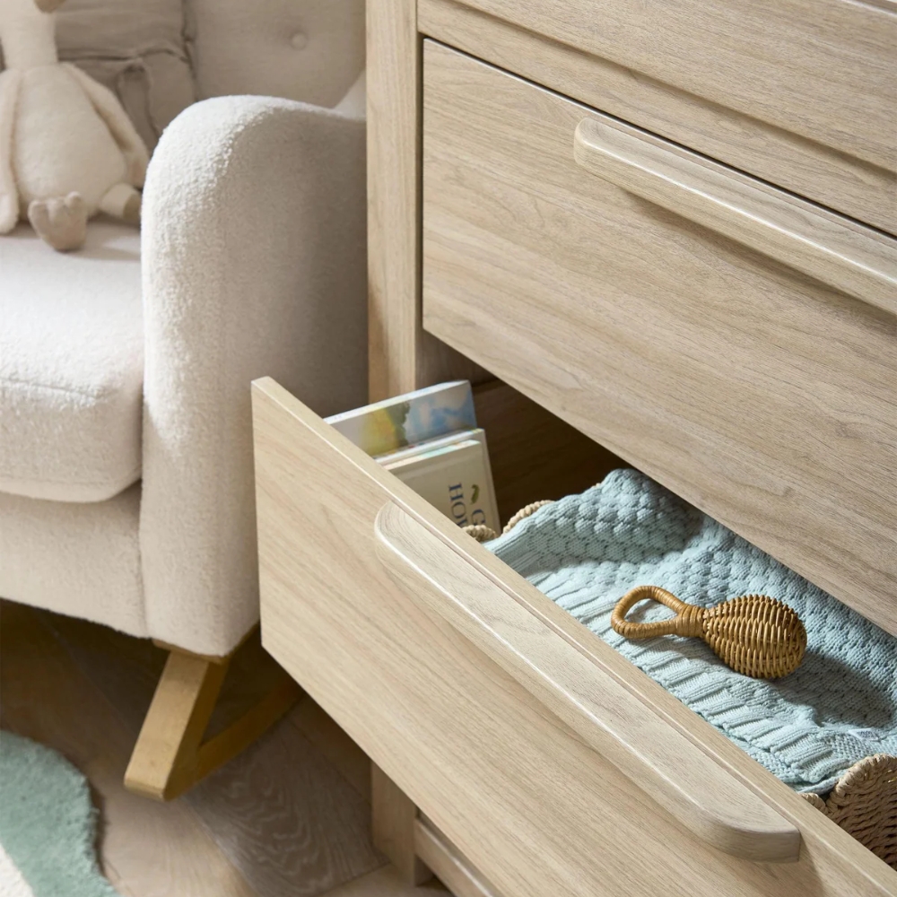 Keep changing accessories close at hand with the dresser/changer, which is designed to fit any Mamas & Papas changing mat. Once baby is 11kg, the changer converts into a dresser for lasting use. Its soft-close drawers help keep the nursery peaceful.