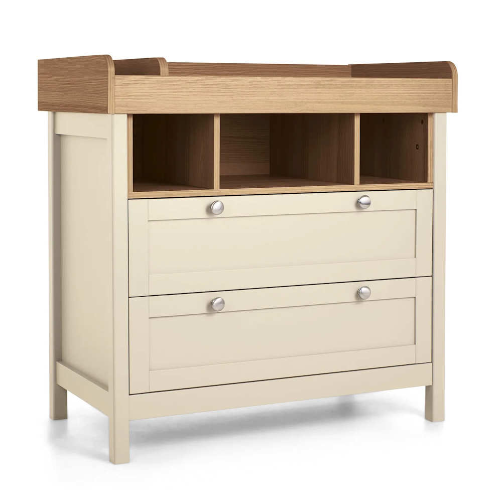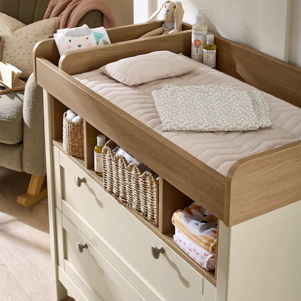 This dresser changer makes changing and dressing your little one easy. It’s got a removable top – so you won’t need to upgrade your furniture when your little one has a growth spurt. And thanks to the drawers and open box-style storage space, there’ll be plenty of room for all of your child’s toys and clean outfits – whatever their age. The handy soft close drawers also mean you won’t wake baby during naptime.