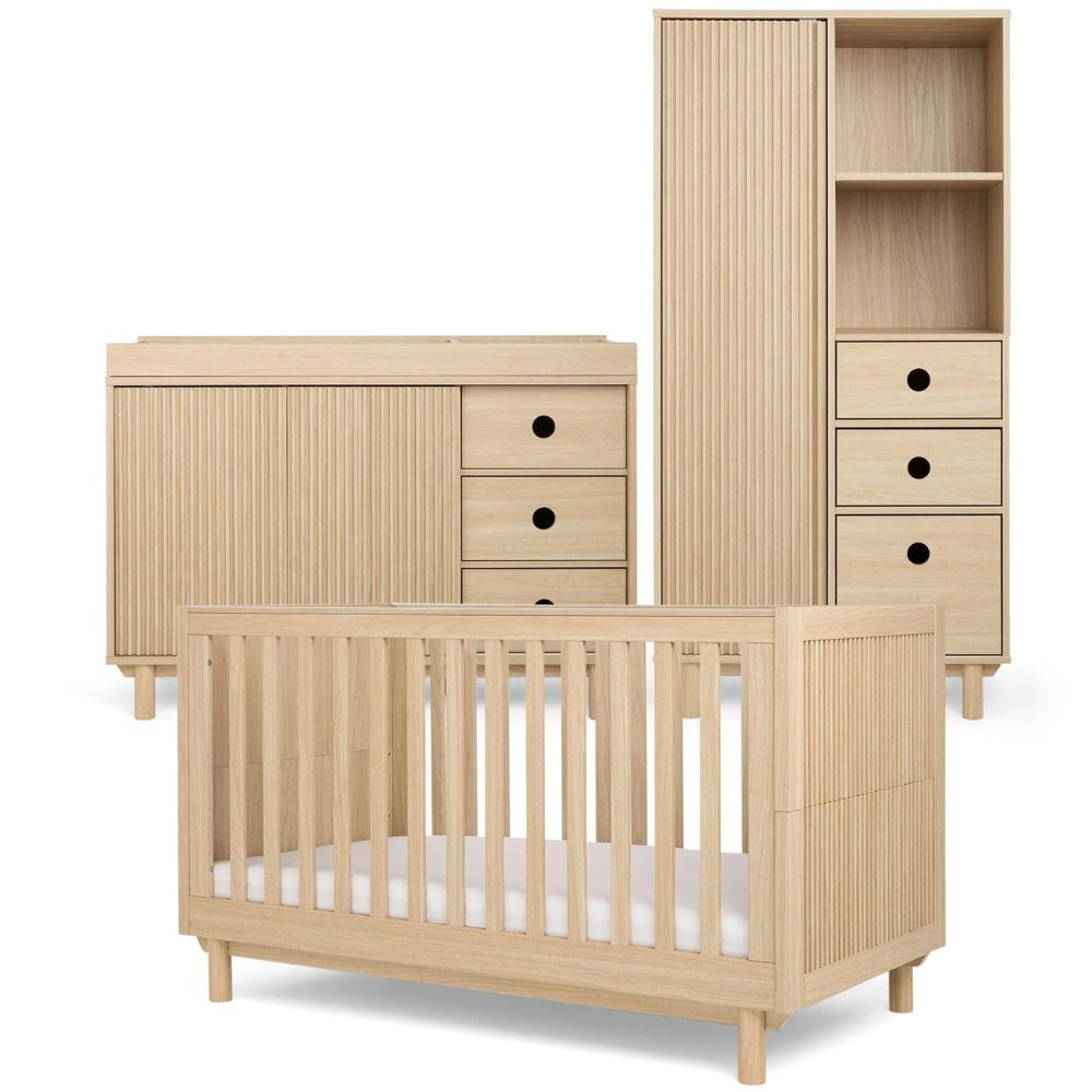 Blending the calming simplicity of Scandinavian design with the clean elegance of Japanese style, our Oska range brings a serene, contemporary feel to your nursery. Featuring a matching cotbed, wide dresser changer, and wardrobe, each piece is thoughtfully designed to evolve with your little one, adapting to their needs from newborn to toddler and beyond, so there’s no need to replace furniture as they grow.