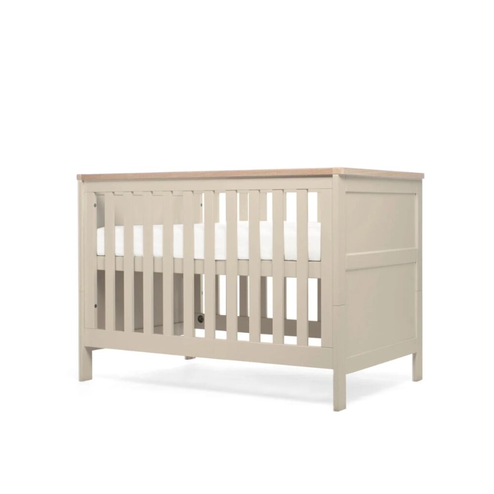 Our Wedmore Small Cotbed range is a modern classic three-piece nursery set designed to kit out smaller spaces without sacrificing style or comfort. The Small Cotbed is carefully designed to fit perfectly in more compact nursery layouts while providing your little one with a roomy and comfortable sleep space. As your child grows, the Small Cotbed easily converts into a toddler bed, offering restful sleep until they reach four years old. Combined with the Wedmore wardrobe and dresser, this neutral two-tone set with soft wood effect accents creates a cohesive and stylish look. Plus, its adjustable features and ample storage ensure you won’t need to replace furniture as your little one grows.