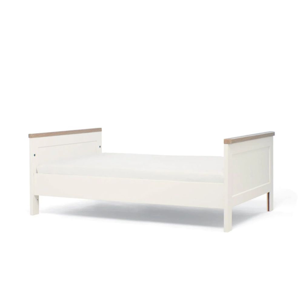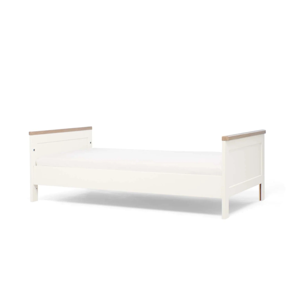 Our Wedmore Small Cotbed will see baby from newborn to toddler years and beyond! Perfect for smaller rooms, its space-saving design is more compact than our regular cotbeds, while still offering the comfort and room your baby needs for restful sleep. It has 3 adjustable base heights that make putting baby down for naptime a breeze and easily converts into a toddler bed when it’s time for your little one to transition, lasting them up to 4 years of age. Finished with soft rounded edges and wood effect accents, it creates a modern, classic nursery look. Don’t forget your mattress: You’ll need to buy a L120 x W60 x D10cm mattress to use with this Small Cotbed.