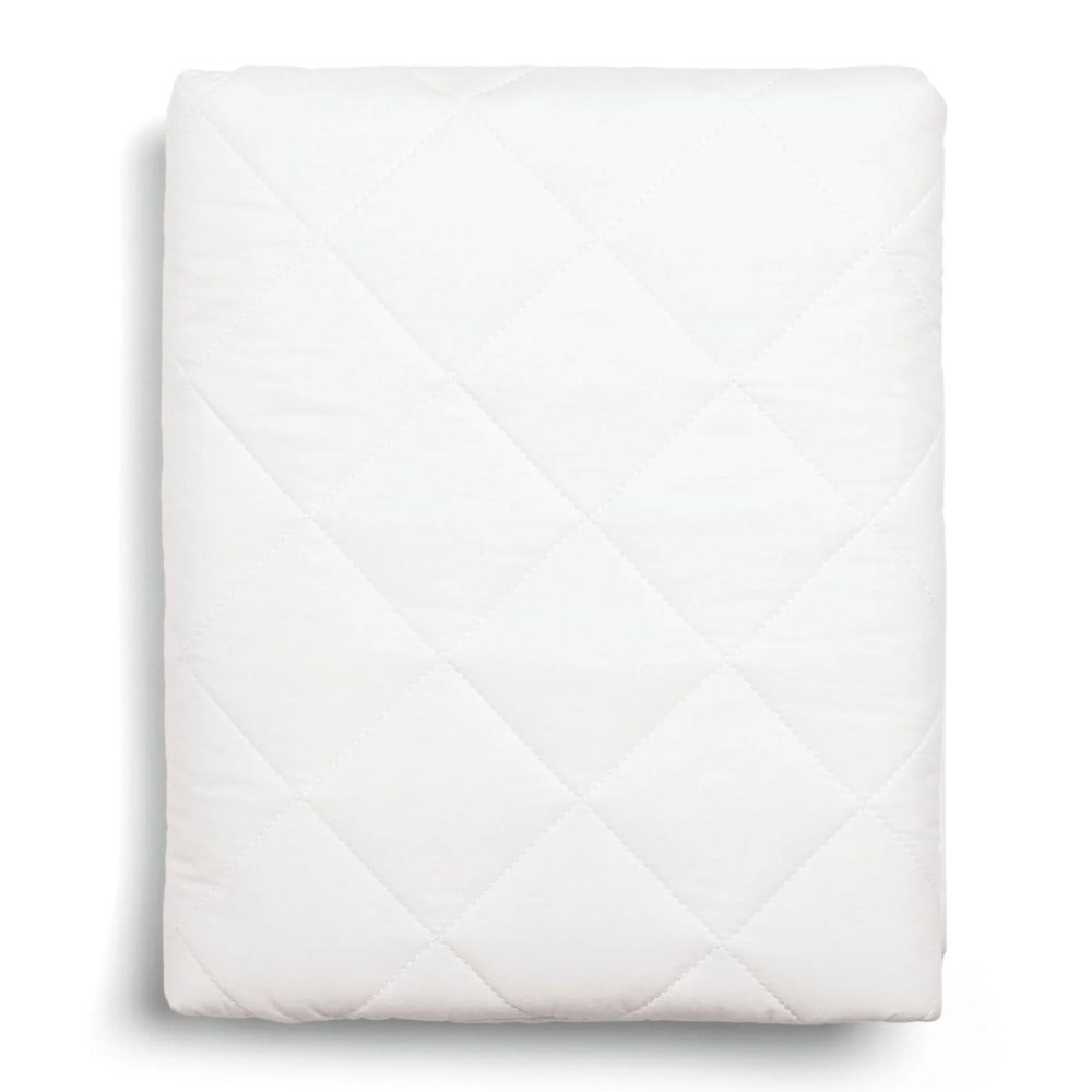 Waterproof mattress protector. Unique anti-allergy fabric. Padded for comfort. Designed to fit all our cotbed mattresses. Machine washable.