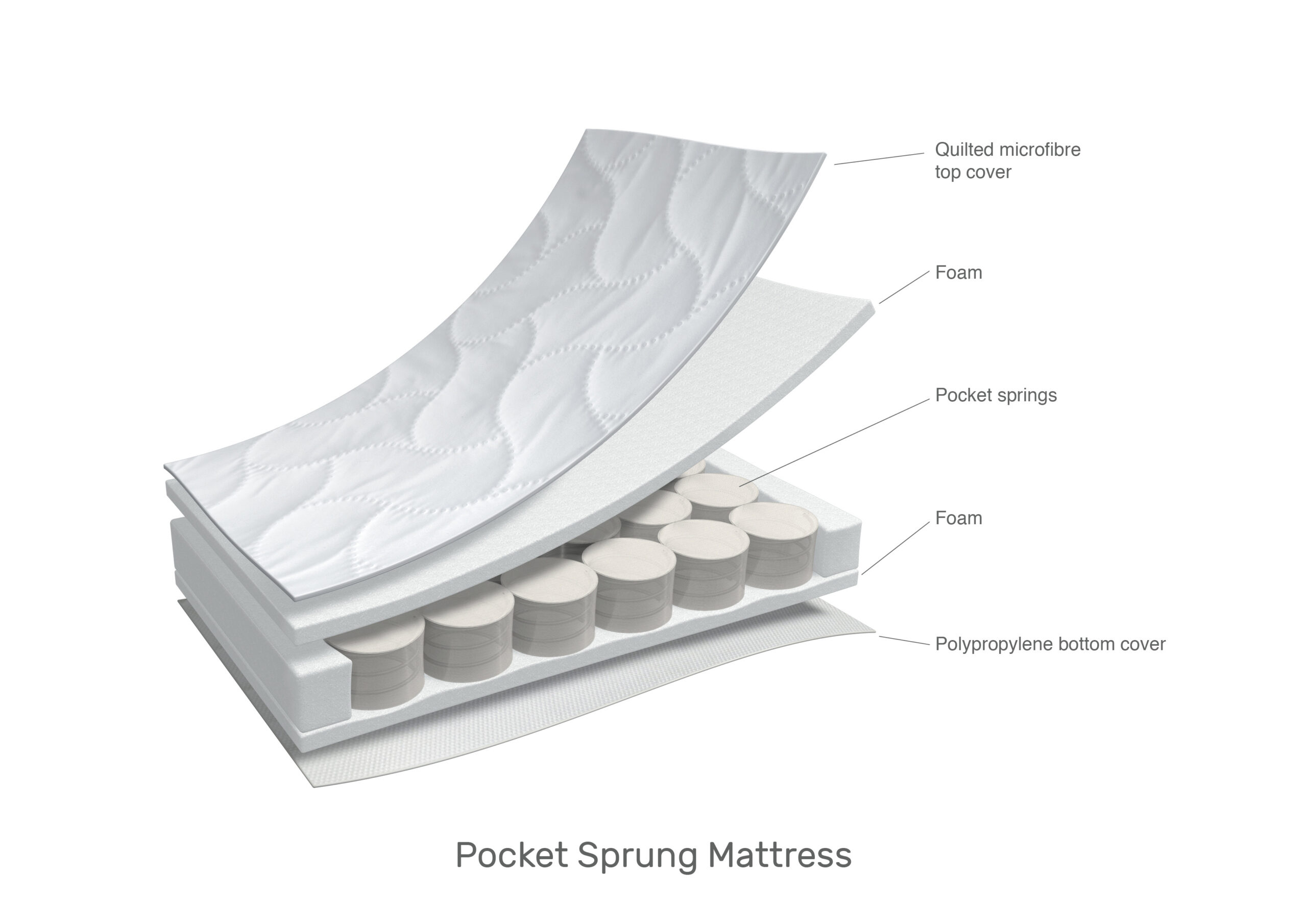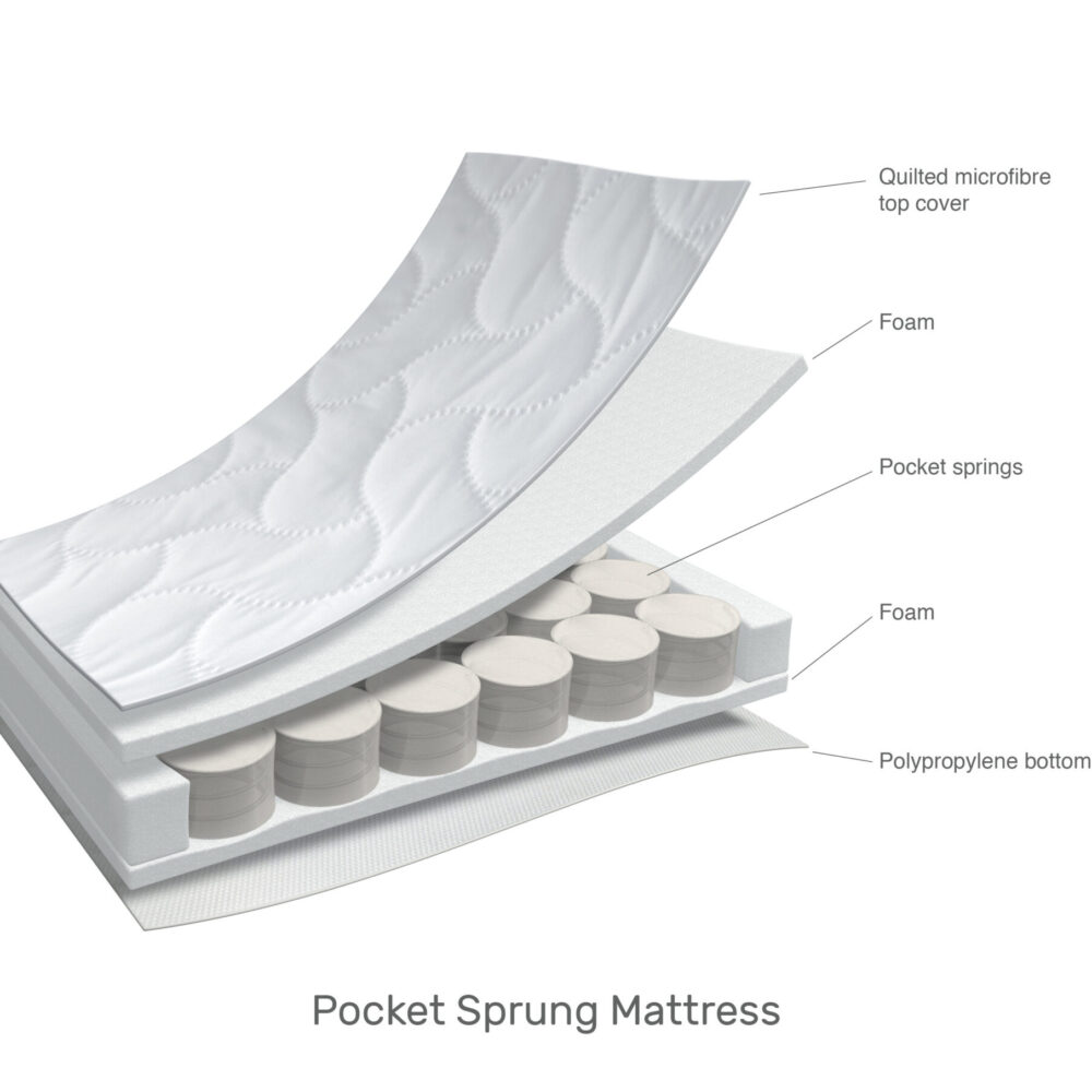 Individual pocket springs are cleverly integrated to give increased support to your tot’s back, neck and head during sleep, promoting perfect posture and sweet dreams for your little one. These individual springs are then encased in a high grade of dent resistant nursery foam ensuring superior comfort.