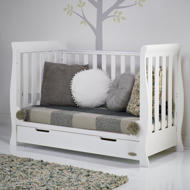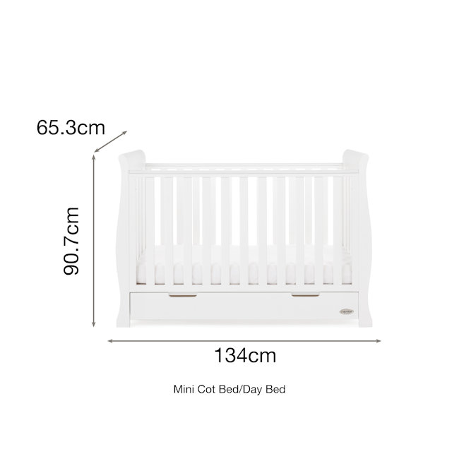Obaby presents their exquisitely designed Stamford Sleigh Mini Cot Bed, the perfect fit for parents searching for a chic and elegant option to furnish little one’s first nursery.