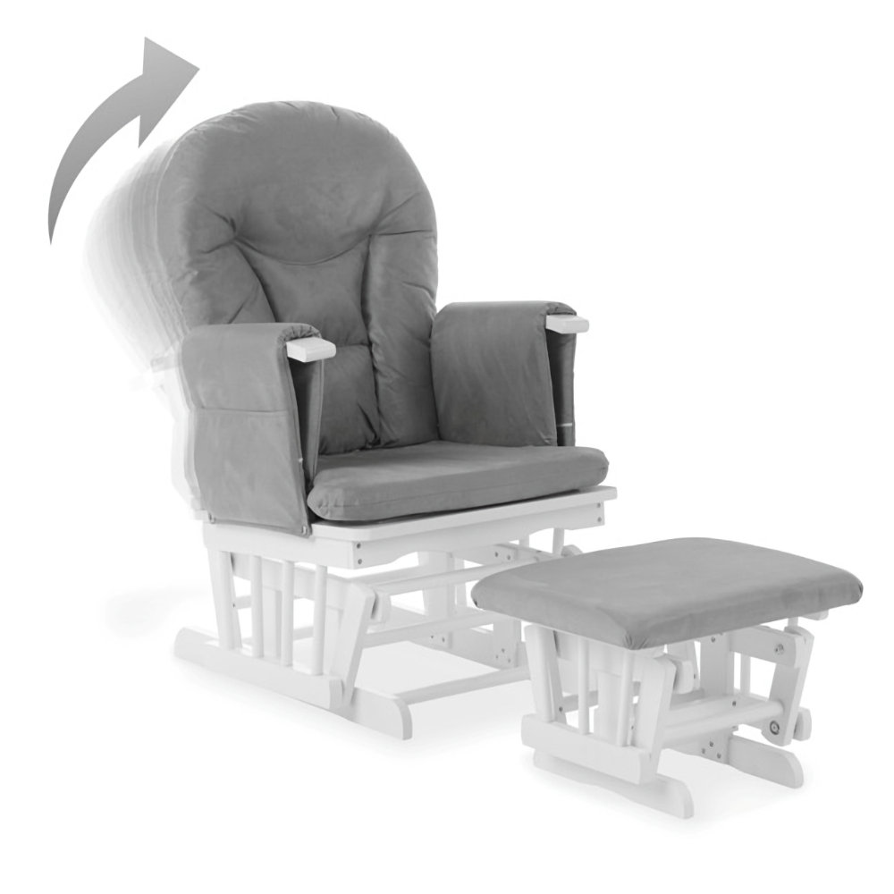 The Obaby reclining glider chair and stool are the perfect place to rest and relax with your baby.