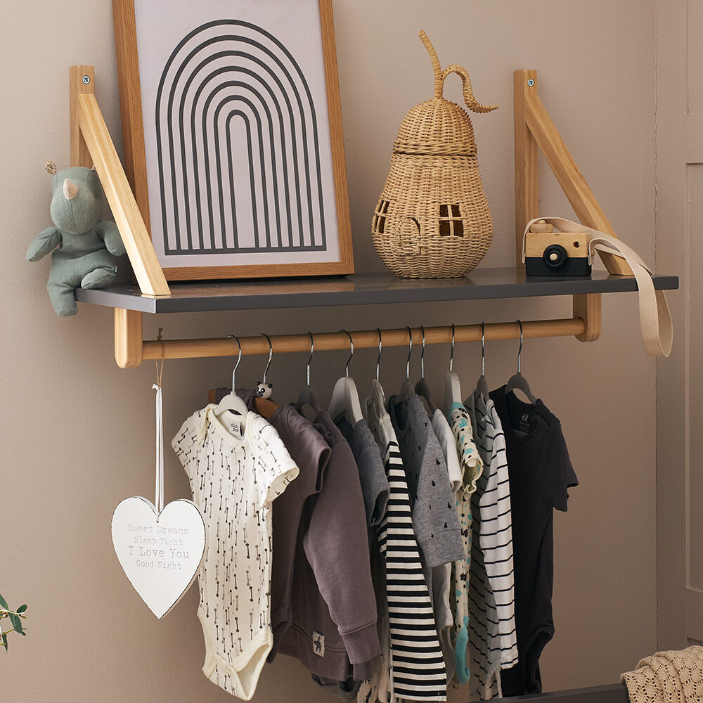 The Maya shelf allows you to store precious belongings close to hand but safely out of reach from little fingers, offering you peace of mind and security. The single deep shelf is the perfect place for books and larger toys while the hanging rail underneath is ideal for storing those frequently used clothing items.