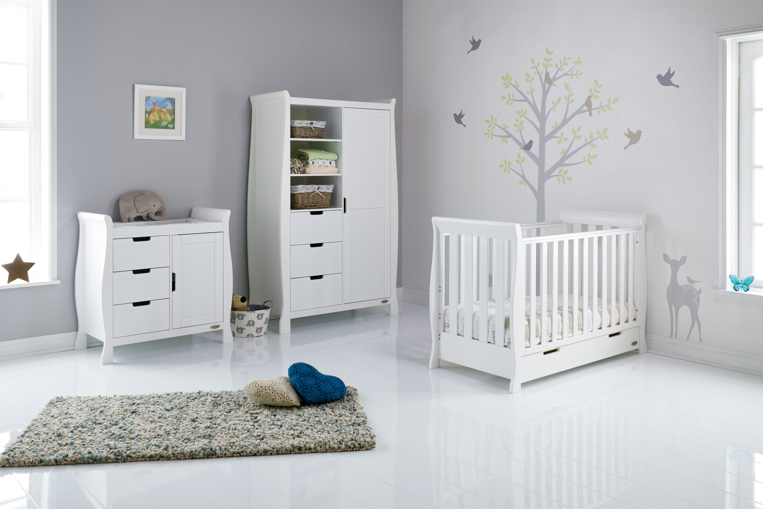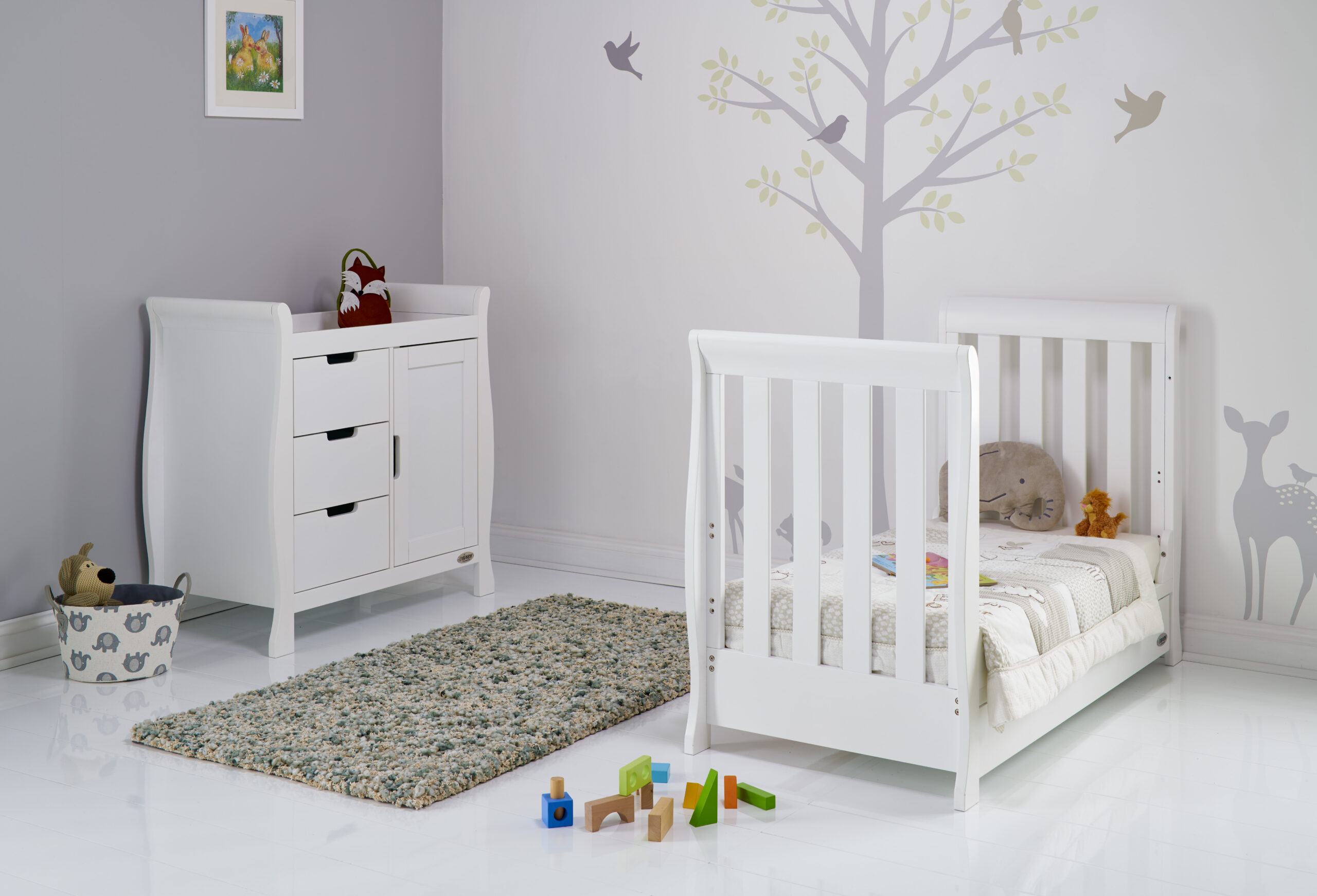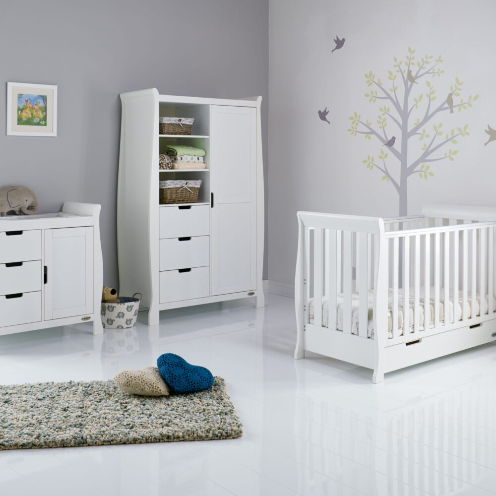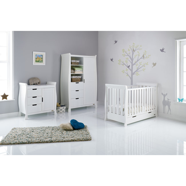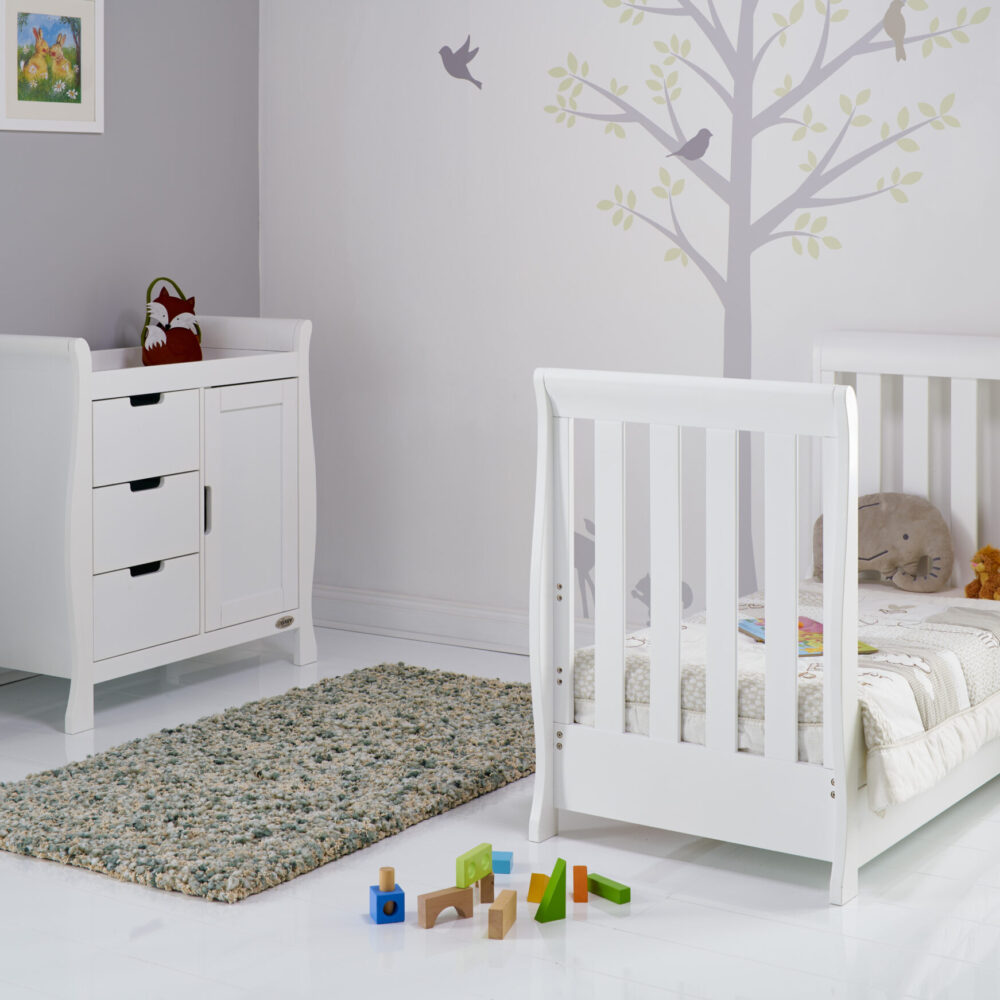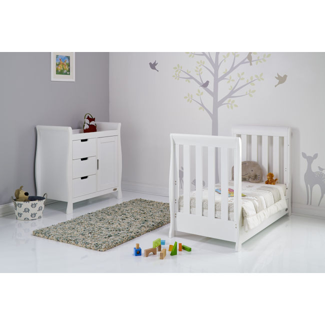 OBaby Stamford Mini Sleigh Cotbed 3-Piece Set – White