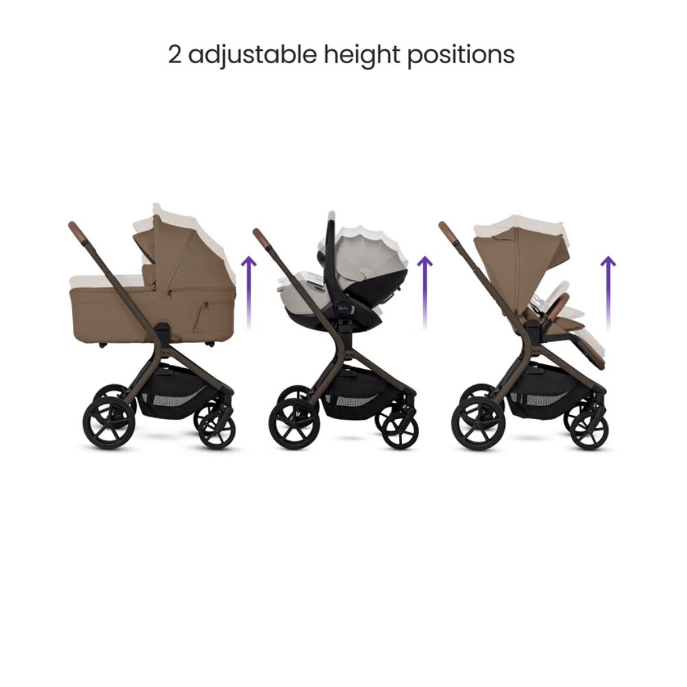 - 2-height elevation system brings baby closer in carrycot, pushchair or car seat mode