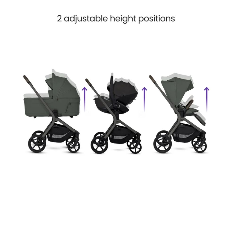 - 2-height elevation system brings baby closer in carrycot, pushchair or car seat mode