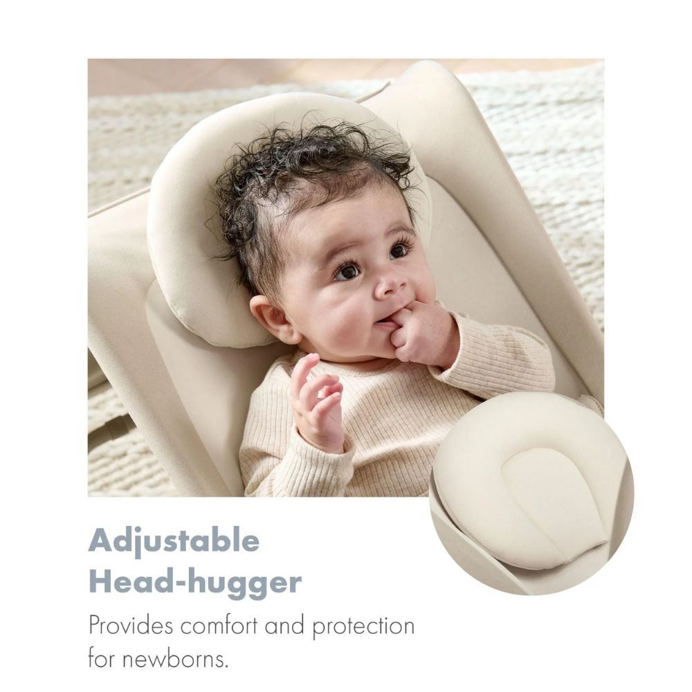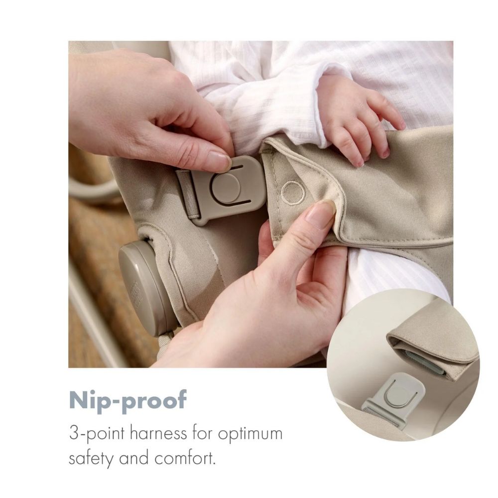Suitable from newborn until around 6 months, Tempo is a safe, secure place to seat your baby before they’re able to sit upright; a comfortable, supportive alternative to holding them; and somewhere they can be soothed, entertained or interacted with, depending on what you need. The detachable toy bar moves easily up and down allowing you to smoothly get baby in and out. The bar comes with 2 sensory development toys for added entertainment. And you can have peace of mind that your baby is comfy and secure, thanks to Tempo’s soft yet supportive seat, nip-proof 3-point harness and protective head hugger pillow.