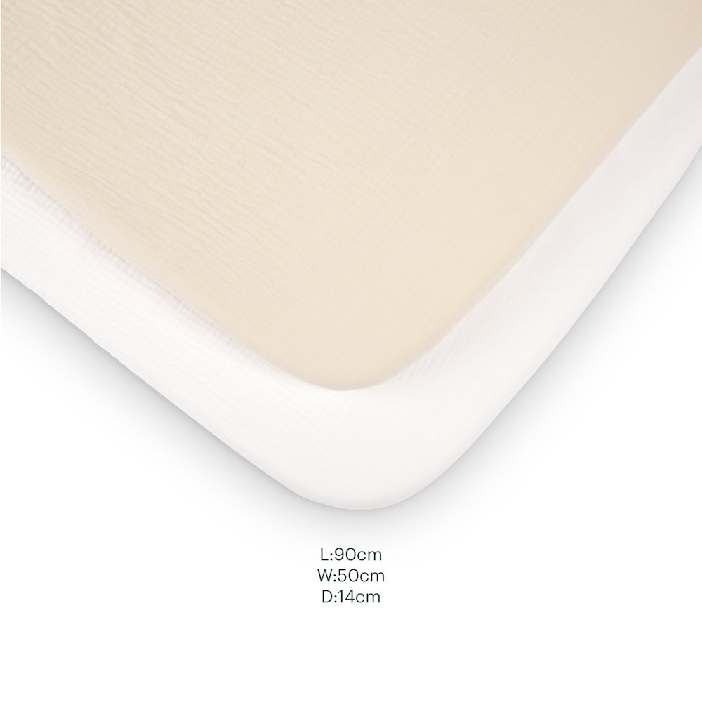 - Universal Crib/Co Sleeper Fitted Sheets: 90 × 50 × 14 (L x W x D cm)
