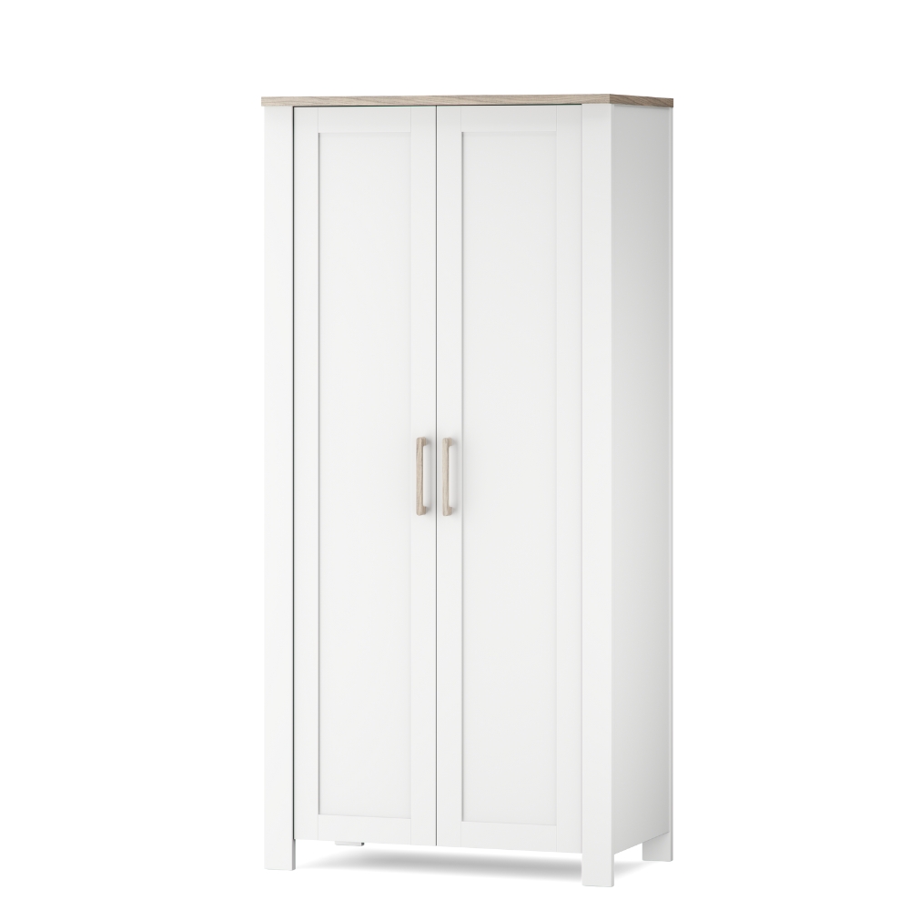 - Timeless white finish with natural ash accents