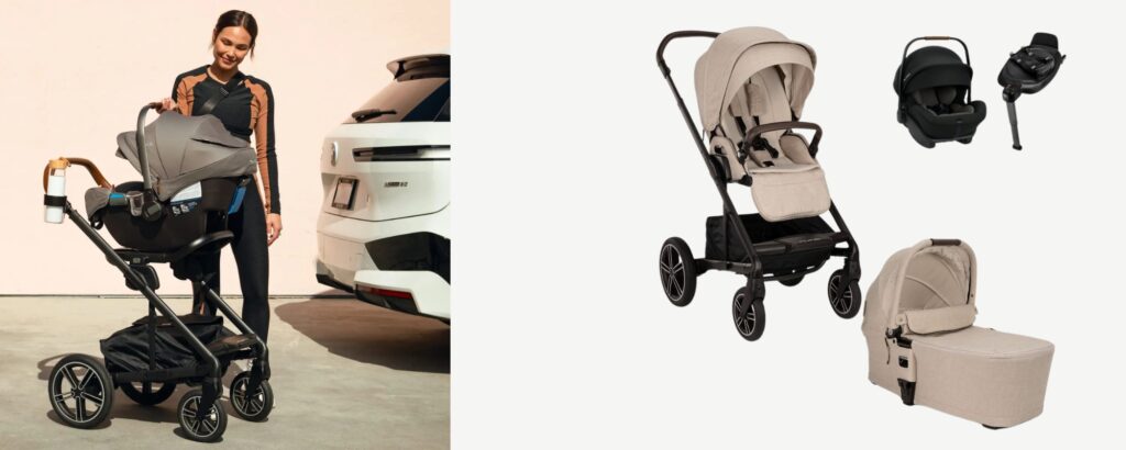 - Nuna Mixx Next – A high-quality mid-range travel system with a one-hand fold, all-wheel suspension, and a large basket. It’s compatible with Nuna’s PIPA car seat but also works with Maxi-Cosi models.
